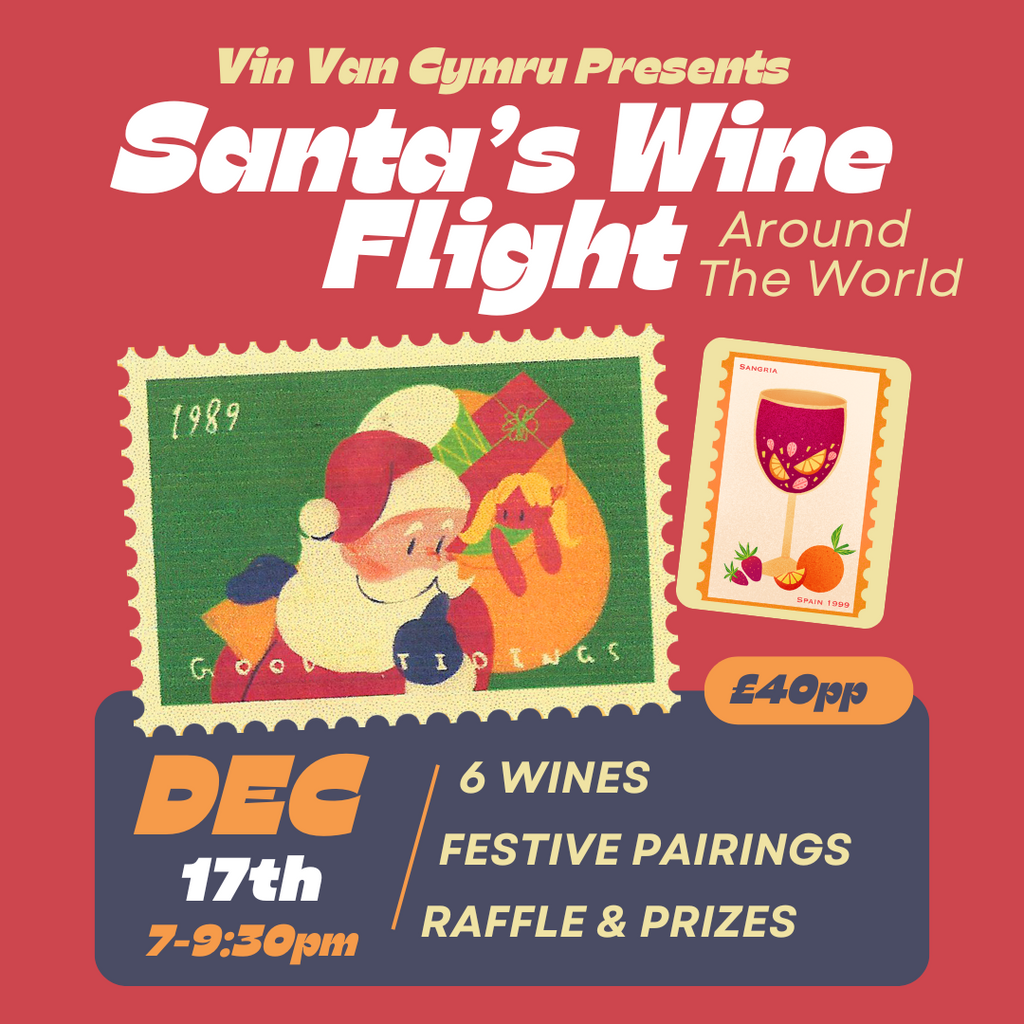We’ll be tasting six wonderful wines from different stops along Santa’s Christmas Eve journey – from sparkling fizz in Europe to bold reds and sunshine whites from further afield.