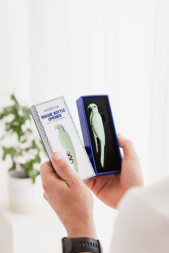 Looking for a corkscrew that's anything but boring? Look no further than the Budgie Bottle Opener! This quirky and adorable corkscrew looks just like a bird and is sure to add some fun to your wine nights. With its sleek design and sturdy construction, the Budgie Bottle Opener is more than just a pretty face. It also makes opening your favourite bottles of wine a breeze. And with its feather-light weight and compact size, it's the perfect tool to take on the go - so you can spread your wings and open bottles anywhere you please! Whether you're a wine enthusiast or just someone who enjoys a good pun, the Budgie Bottle Opener is sure to make you chirp with joy. So why settle for a boring corkscrew when you can have a fun and functional one?