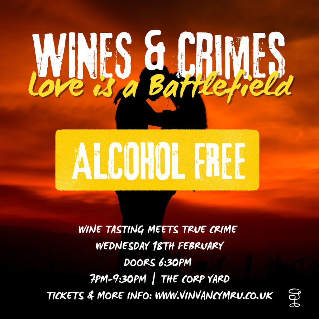 Join us for Wines & Crimes: Love is a Battlefield, where we explore real-life crimes of passion and obsession, each one poured alongside a carefully chosen glass of wine.